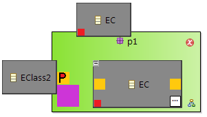 A Container mapping is used to represent model elements graphically as containers, which can contain sub-elements (including other containers, recursively). A container can also have bordered nodes, which are like normal nodes but appear on the border of the container, for example to represent ports. Container mappings can appear directly inside a layer description, in which case the container will appear directly on the diagram, or inside another container mapping.