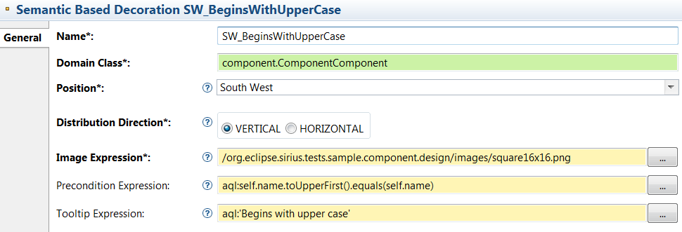 The View Condition Expression is similar to the Semantic Condition Expression, but is evaluated on the context of the view element of each instance of the specified mapping. The view element is the model element used by Sirius to represent the graphical element. Using these expressions require some knowledge of the structure of the view model used by Sirius.