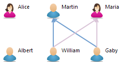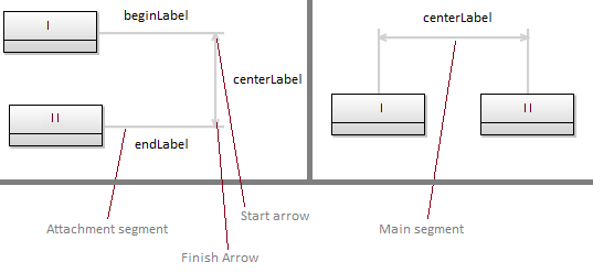 The elements which are defined in different layers can interact and reference themselves. For example, it is possible to define a type of edge (connection) between elements which are defined in different layers; the edges will only be visible if all the concerned layers are enabled: the ones which define the source graphical element, the one for the target graphical element, and the one for the edge itself.