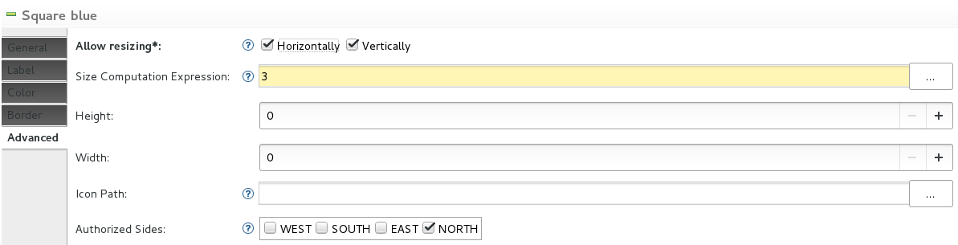 Most of the properties used to configure the various styles are self-explanatory. See the styles section below for a general discussion. You can also refer to the tool-tips available directly in the editor on the “question mark” icon of each property.
