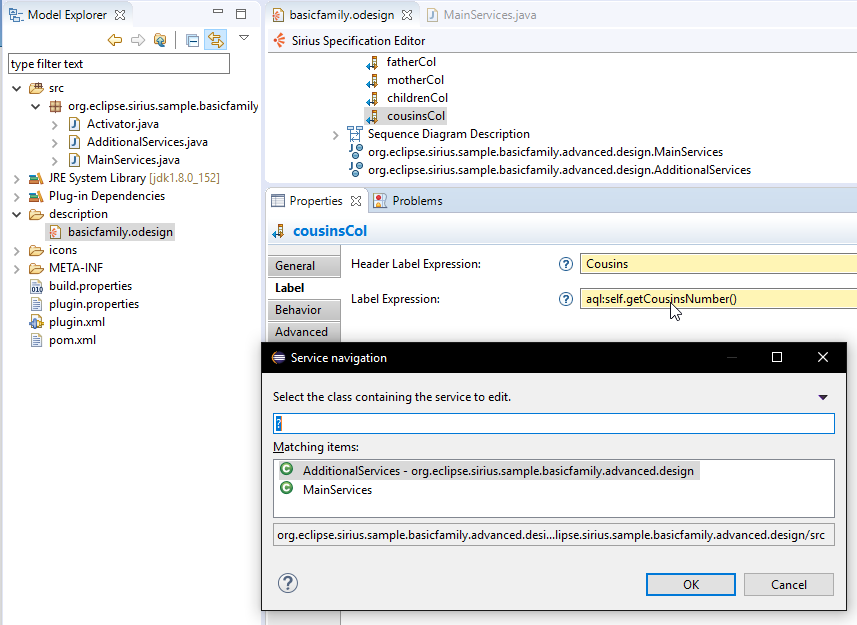 Sirius provides some standard services that can be used from any VSM simply by adding the appropriate reference (as a Java Extension) to the implementation class’s fully qualified name. When using such a service class, make sure your Viewpoint Specification Project has a dependency towards the Sirius plug-in which provides said class.